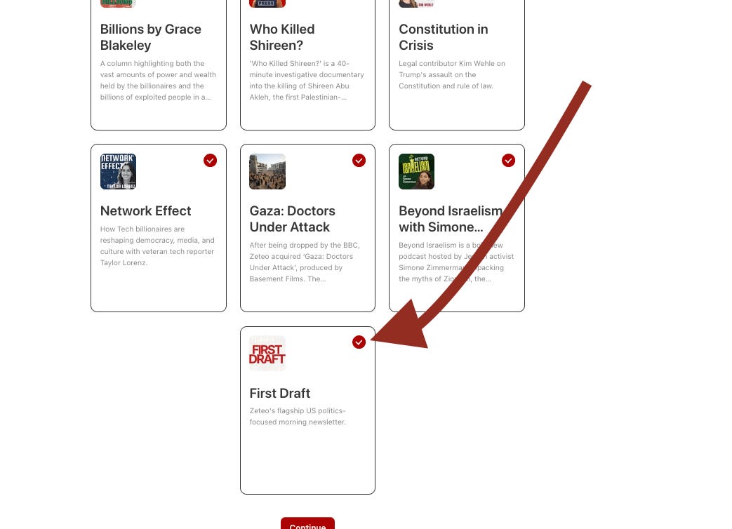 In North America and don’t want First Draft, but would still like to receive other Zeteo emails?