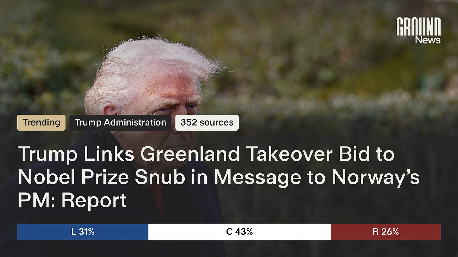 The Ground News mobile app and website make it easier to understand stories like this by showing you how outlets across the political spectrum are covering Trump’s ultimatum to Denmark. Plus, you can dive into who is funding each of these outlets to better understand their biases. In fact, Ground News brings in 50,000+ sources, so you can go deeper on everything from the international legality of Trump’s demands to the reality of Arctic sovereignty.