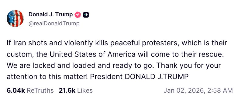 Just hours ago, President Donald Trump sent an extraordinary and unprecedented social media post – threatening Iran with war if Tehran harms its own protesters.