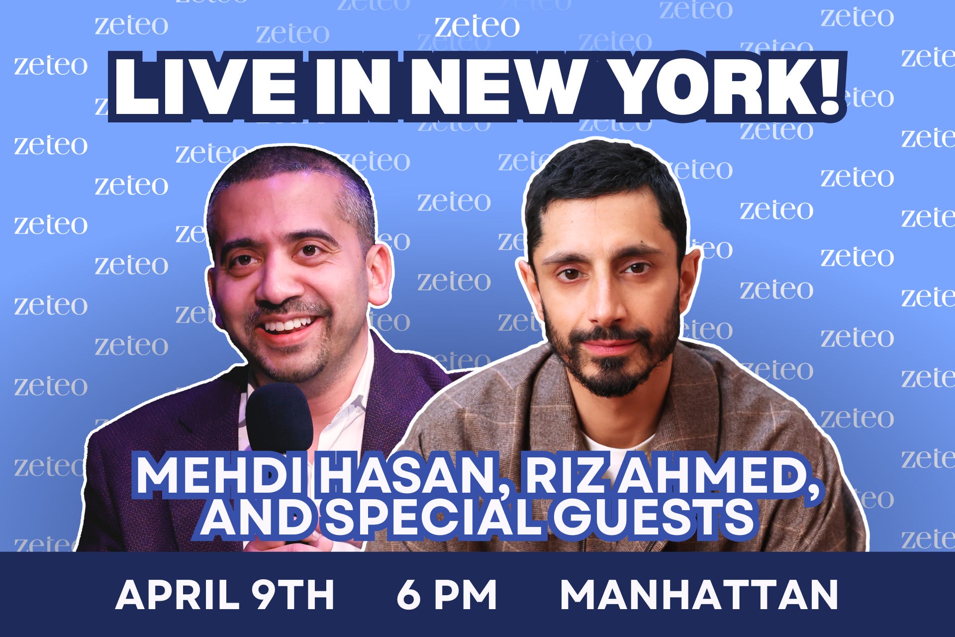 New Yorkers (and those in the area), Zeteo and Mehdi are coming to the city on April 9 for a LIVE conversation with Academy Award-winning actor and rapper, the one and only Riz Ahmed.