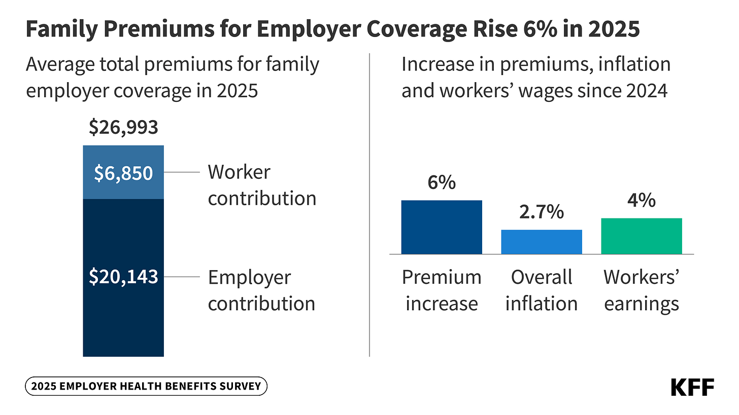 Health policy nonprofit KFF is out with its annual benchmark health benefits survey, detailing just how high healthcare premiums are for families on employer-sponsored insurance plans... and it’s staggering. Go ‘Murica!!!!!!