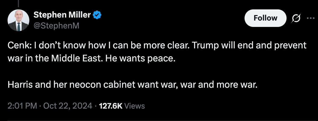 White House deputy chief of staff Stephen Miller, who’s directing Trump’s war on immigrants, claimed in the past to oppose US wars abroad.