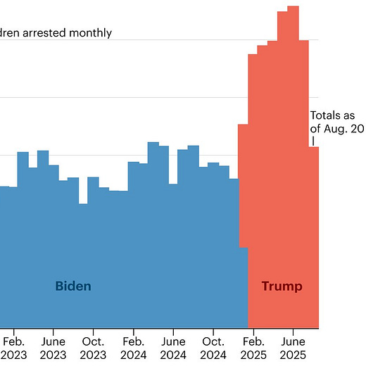 Meanwhile, ProPublica reported that Trump immigration authorities detained the parents of at least 11,000 US citizen children in the first seven months of his second term, leaving an average of 50 kids per day with a parent in detention.