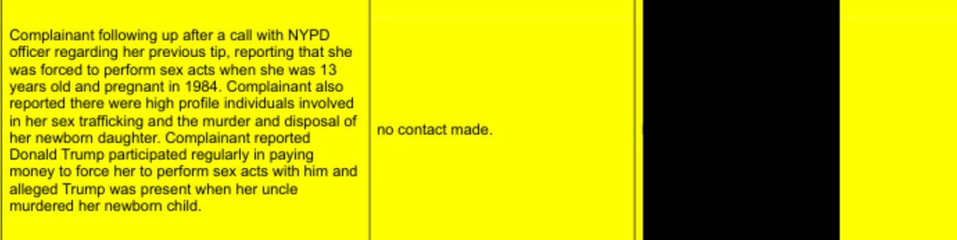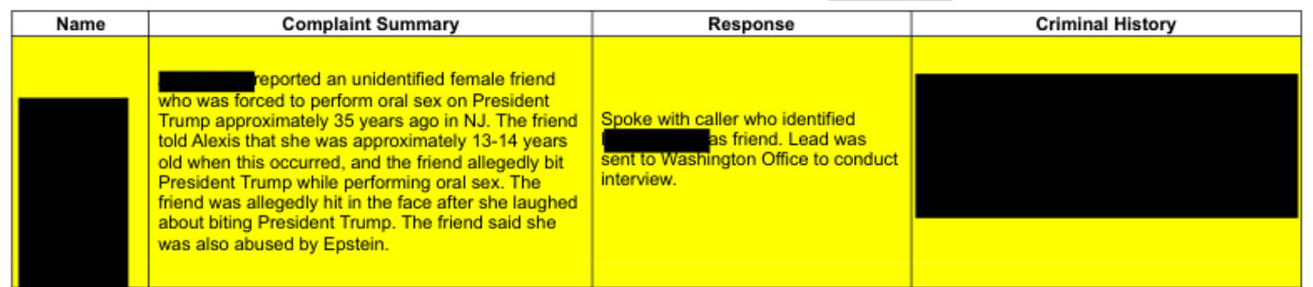 More troubling, the president’s name appears in an FBI tip sheet several times in abuse allegations. This tip sheet contains multiple instances of alleged sexual abuse by Mr. Trump.